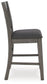 | Details | Includes counter height dining table and 6 counter height bar stools, Table made with hardwood solids, acacia veneer and MDF substrate, Stools made with solid hardwood frames, Antiqued gray wash finish, Polyester upholstery, Foam cushioned seats, Nailhead accents, Assembly required | |