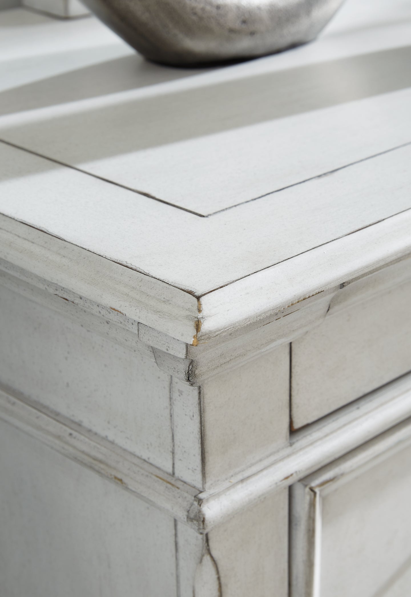 | Details | Includes dresser and mirror, Made with solid wood, veneers and engineered wood, Distressed whitewash finish, Dark gray pewter-tone finished metal hardware, 7 smooth-gliding drawers, plus 2 small-scaled accessory drawers, Mirror attaches to back of dresser, Assembly required | |