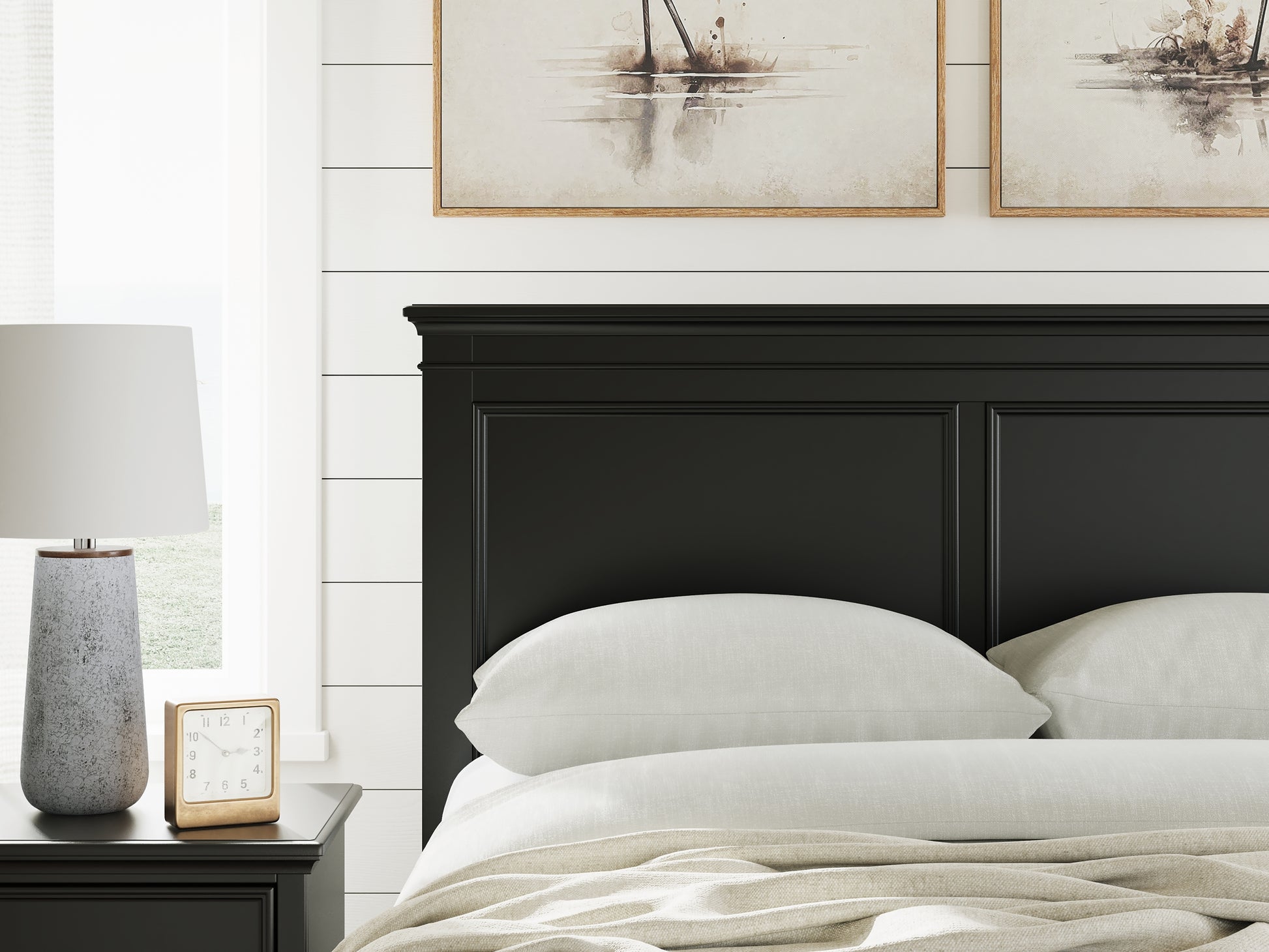 | Details | Includes panel headboard, storage footboard with roll slats and rails , Made with hardwood solids, birch veneer and MDF substrate, Side rails feature laminated solid hardwood slat support rails (or LVL) with glued and screwed blocking for added strength, Black painted finish, Round metal knobs with satin nickel-tone finish, 2 smooth-gliding drawers in footboard, Tapered feet, Bed does not require additional foundation/box spring; accommodates most zero clearance adjustable bases with the addition of a bunkie board, Mattress available, sold separately, Assembly required | |